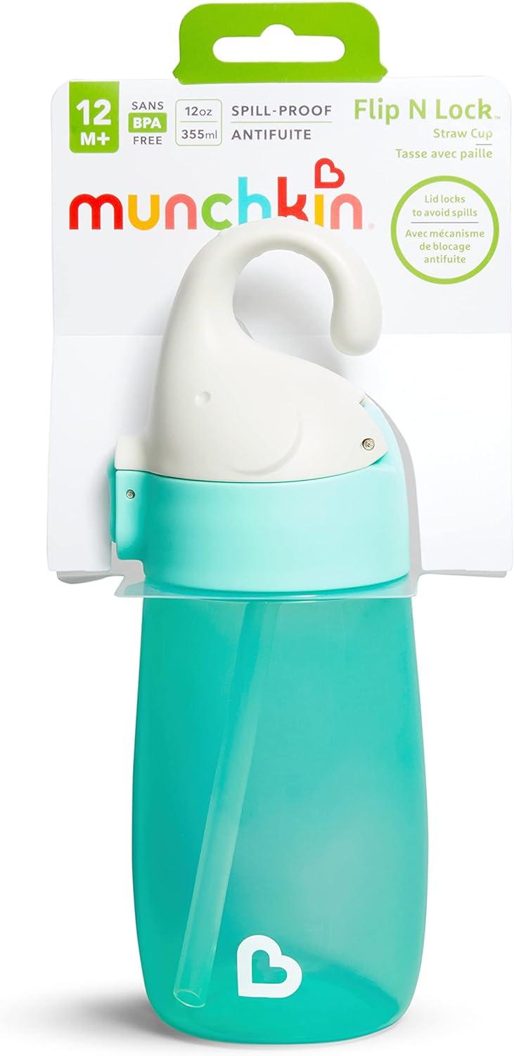 Munchkin® Flip n Lock™ Elephant Toddler Straw Cup, 12 Ounce, Mint(1 Count (Pack of 12))