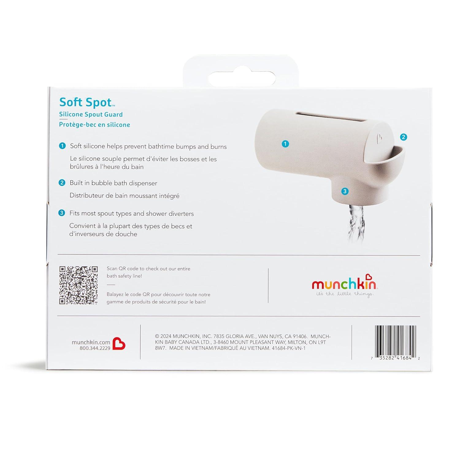 Munchkin® Soft Spot™ Bath Spout Cover for Baby, Bathtub Guard with Built-in Bubble Bath Dispenser, Silicone, Grey